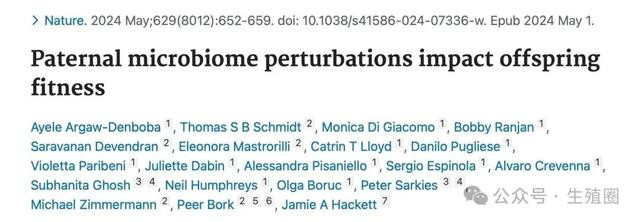 Paternal microbiome perturbations impact offspring fitness. Nature. 2024 May;629(8012):652-659. doi: 10.1038/s41586-024-07336-w. Epub 2024 May 1.